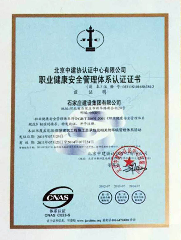 職業(yè)健康安全管理體系認(rèn)證證書(shū)